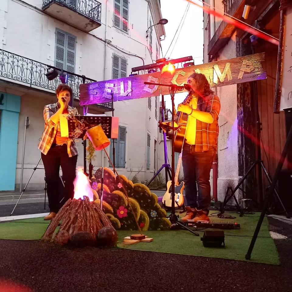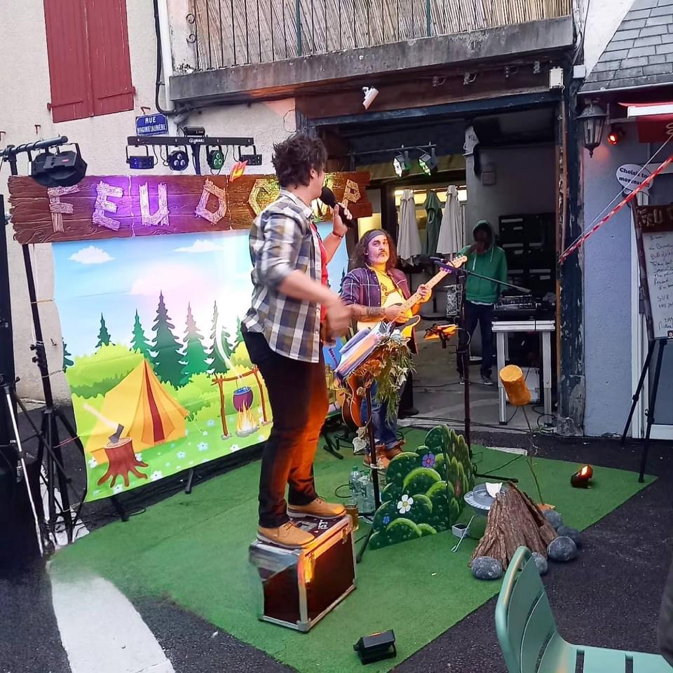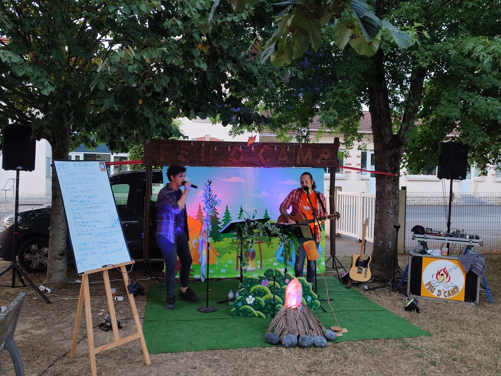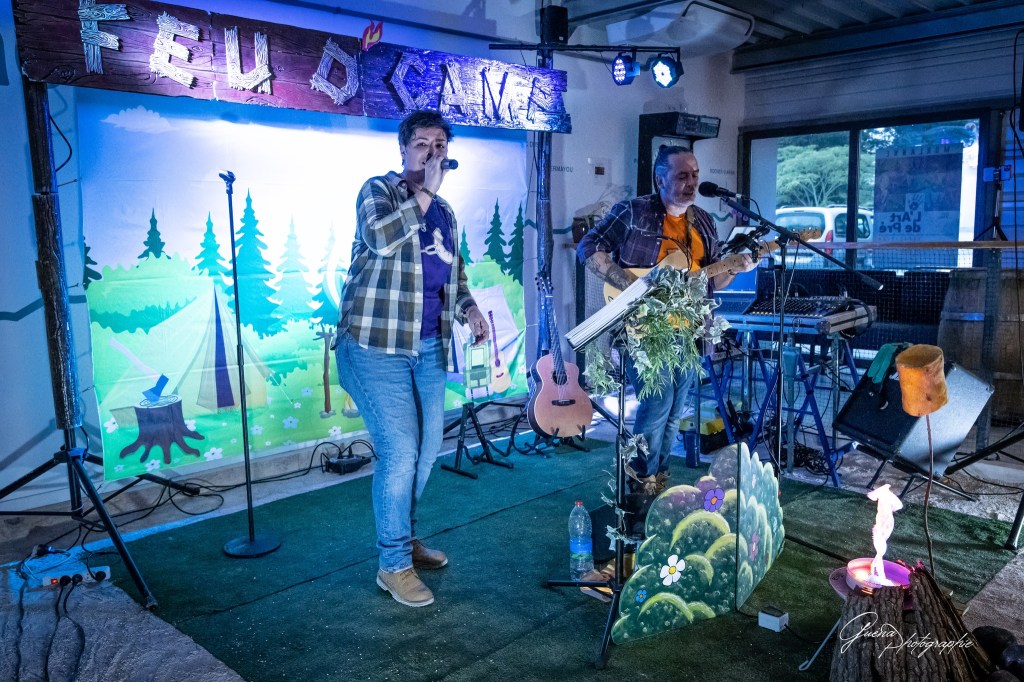 Plongez dans l’esprit festif de Feu d’Camp, où la musique live réunit tous les participants pour une soirée de partage et de bonne humeur ! Ici, c’est l’ambiance chaleureuse, l’énergie communicative et la convivialité qui règnent : chacun choisis ses chansons favorites parmi plus de 200 titres, toutes générations confondues, et Muriel et Joan les interprètent en direct. Ensemble, faisons vibrer la fête : vos envies font la playlist, vos voix et votre enthousiasme créent l’ambiance. Rejoignez nous pour vivre une expérience interactive et humaine, où chacun devient acteur d’une grande célébration musicale !