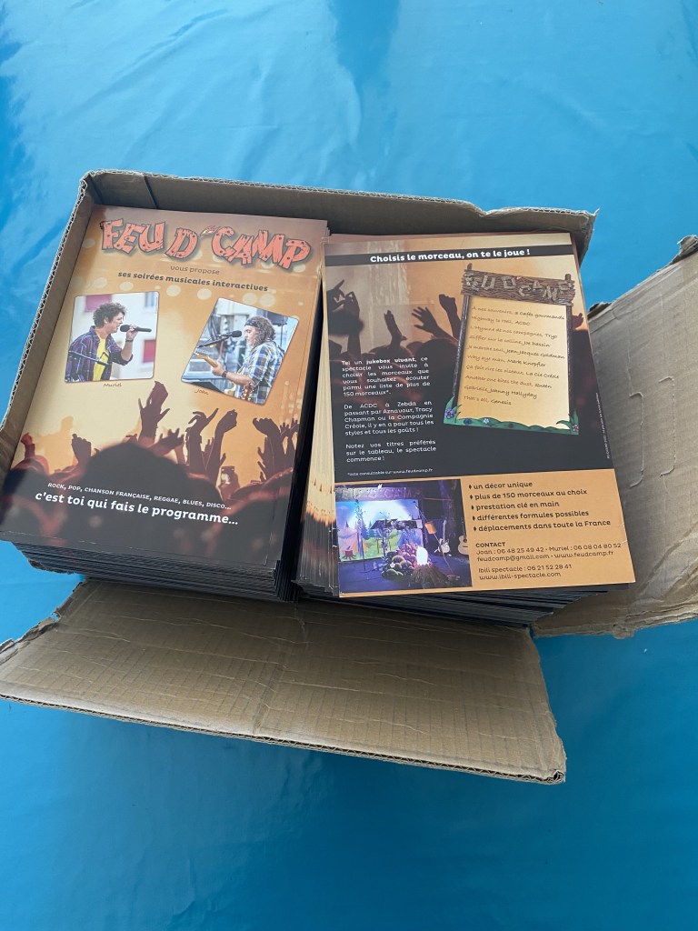 Ils sont arrivés, ils sont tout chauds, ce sont les nouveaux flyers Feu d’camp !!!