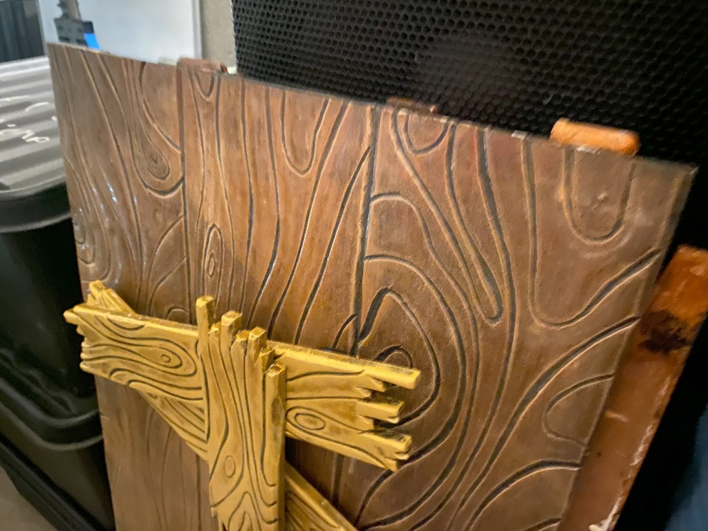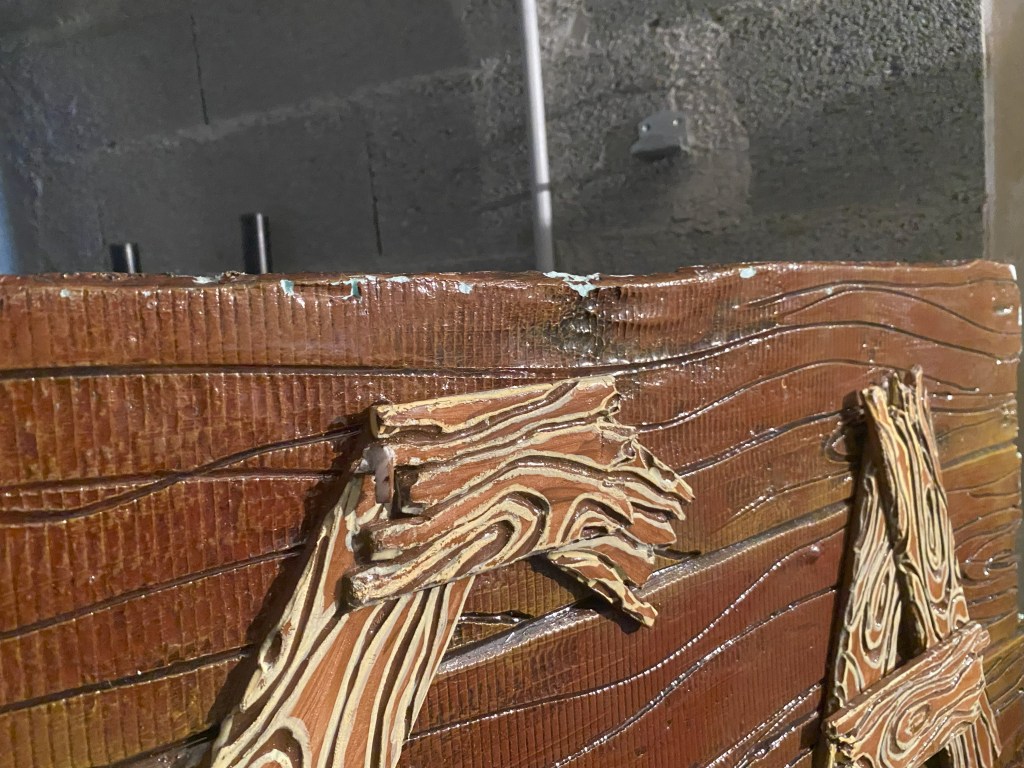 Notre ancien panneau, construit à basse de mousse de polystyrène, commençait à souffrir des voyages et des montages/démontages de la saison passée…