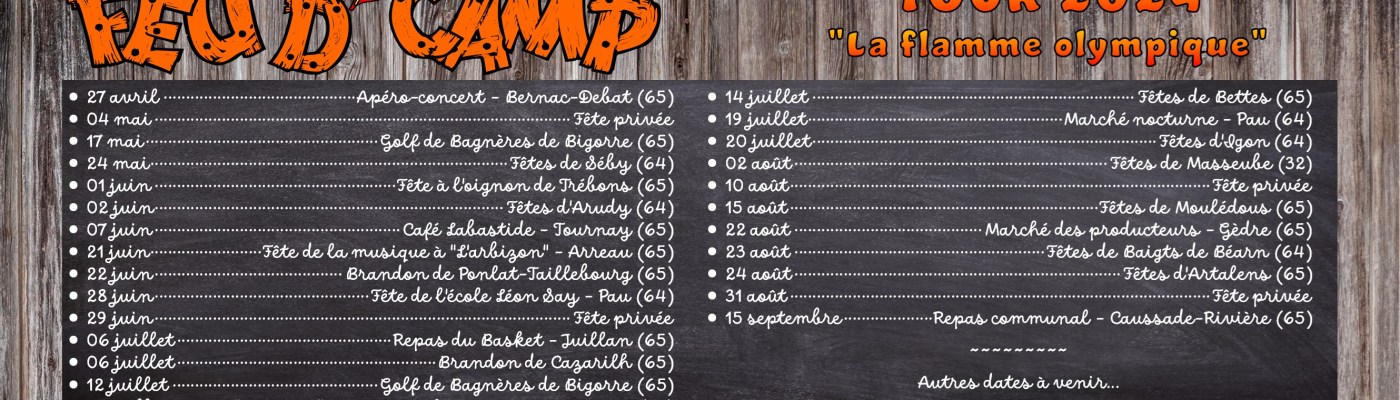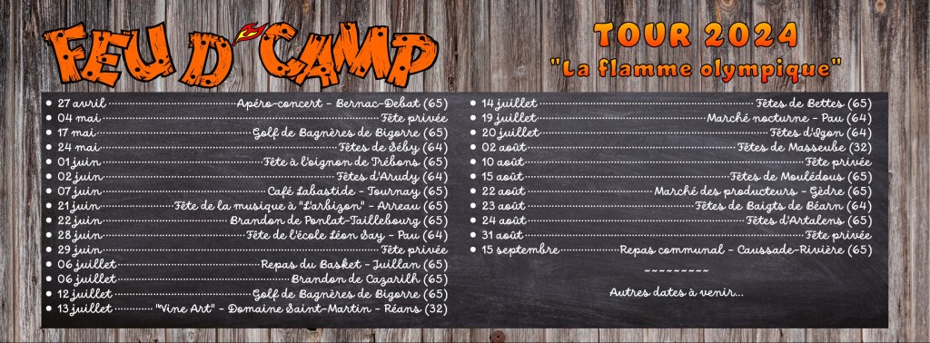 Comme l’an dernier on change le bandeau de la page Facebook pour y inclure les dates de nos concerts. Bien entendu on le tiendra à jour au fur et à mesure des confirmations, mais vous pouvez déjà noter que nous animerons les journées de l’oignon de Trébons, les fêtes 🥳 de Séby, Arudy, Bettes, Igon, Masseube, Moulédous… Entre autres…