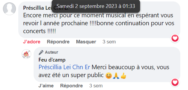 « Un super concert interactif pour une grosse ambiance ! Merci »